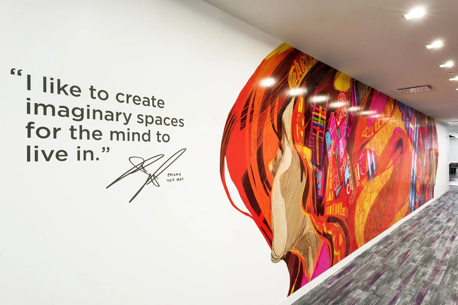 Worked with PurePartner By Design to install an illustrative mural on a corridor in the MetLife Warwick Offices.Included a quote and signature.